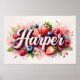 Celebrate sweetness and charm with this personalised name poster featuring the name Harper in elegant 3D script, surrounded by vibrant watercolor fruits and soft floral elements. Juicy strawberries, blueberries, raspberries, and delicate blooms come together in a dreamy botanical arrangement — perfect for nurseries, children's rooms, or birthday gifts.