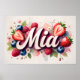 Celebrate sweetness and charm with this personalised name poster featuring the name Mia in elegant 3D script, surrounded by vibrant watercolor fruits and soft floral elements. Juicy strawberries, blueberries, raspberries, and delicate blooms come together in a dreamy botanical arrangement — perfect for nurseries, children's rooms, or birthday gifts.