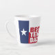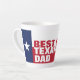 Best Ever TEXAN DAD Latte Mug. This is a stylish personalised BEST EVER TEXAN DAD latte mug, showing the Lone Star State flag of TEXAS and the words BEST EVER and TEXAN DAD in red and white bold typography. You can also personalise and add your name in the bottom right hand corner. This red, white and blue Texan flag latte mug can be CUSTOMIZED to read 'Perfect Texan Dad' or 'Perfect Texan Mum', or you can change the words and add your name instead. Or you could add a favourite Bible reference or Christian text. This patriotic Texan flag latte mug could make the ideal gift for Texans who are proud of their heritage and for anyone who loves Texas. Choose from a wide selection of patriotic Texan cards, home decor, clothing and gifts, designed for you by Berean Designs. MOM version listed separately.