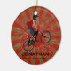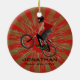 Extreme Biker's Personalised Ornament Christmas 20XX. A biker doing a wheelie against a red and gold starburst background. All text customisable, front and back!