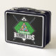 This is a standard metal lunchbox that appears to work just fine. We designed this box ourselves with an uploaded photo and custom text on the front and back. It looks absolutely beautiful except the front of the lunchbox is not centered like it shows in the photo. The print borders don't align with the inset flat part of the box where the preview photo online showed it perfectly centered in there. The back looks nice and centered though.