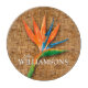 Personalised with your name and a beautiful bird of paradise on a woven wicker print pattern, this round glass cutting board makes a stylish addition to your kitchen decor. MATCHING items in our store.