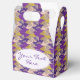 Graphic birds seamless pattern. Tesselation with cute birds in blue purple and golden tones. Customisable favour box. You can easily change size position of the design (scaling) and add your own text for many occasions.