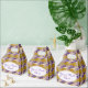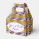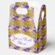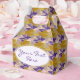 Graphic birds seamless pattern n°3. Tesselation with cute birds in blue and golden tones. Customisable favour box. You can easily change size position of the design (scaling) and add your own text for many occasions.