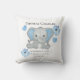 Personalised Birth Stats Baby Elephant Blue Grey Cushion