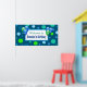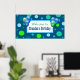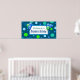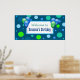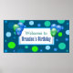Cute blue and green polka dot birthday banner, Welcome sign, with big blue and green polka dots and balloons. Just add your child's name in the customise area.