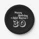 Personalise 30th Birthday Party, black and white over the hill theme Paper Plates Custom Celebration decor.