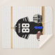 A fun design for the budding grid iron star or American football fan, this black and silver grey grid iron jersey can be customised with any number and name to create a gift for the football player, grid iron coach or football fan. Also featured beside the football jersey is a water bottle, an American football and a grid iron helmet.