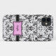 Elegant Black and White Damask phone cases. Add your name. With pink nameplate.