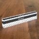 Personalised black and white polka dot pattern name plate. Black polka dots on a white background and a black band in the middle with your custom name.