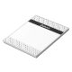 Personalised black and white polka dot pattern notepad. Black polka dots on a white background and a black band with your custom name.