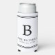 These personalised black and white tall seltzer can coolers/koozies are perfect for a wedding, engagement party, bridal shower or rehearsal dinner. The design features the trending black and white colour scheme with simple, modern fonts. Customise them with your Initial, name and event date to make them one of a kind! These will make a great favour for your guests that they will use for years!