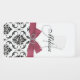 This girly, stylish, cute design is perfect for her. A monogrammed black and white damask pattern, a PRINTED pink bow and ribbon with two hearts with diamonds and a blank area where you can add your name and monogram initial in gorgeous script fonts. Design by Elke Clarke©
