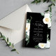 Invite your guests to your special day with the Personalised Black Elegant White Roses Wedding Invitation. Featuring exquisite white roses elegantly set against a rich black backdrop, this invitation captures a sophisticated and timeless aesthetic. Personalise it with your names and wedding details to create a unique touch that reflects your style. Each invitation not only sets the tone for your celebration but also becomes a treasured keepsake, allowing your loved ones to remember the beauty of your love story.