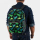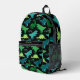 Personalised modern black, blue and green Funny Dinosaur Dino Pattern Printed Backpack by Millennium, perfect for boys and girls who love vibrant designs. This customisable backpack allows you to add a name to the outside, making it a unique and special gift. If personalisation isn’t desired, simply leave the text area blank for a sleek, stylish look. Ideal for school, travel, or everyday use, this backpack combines functionality with fun.
