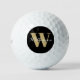 Minimalist elegant simple gold and black script custom monogram initial, letter and name, or last name, family name personalised Titleist Pro V1 Golf Balls, available in many brand options