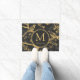 Welcome your guests in style with this luxurious black and gold doormat featuring a black and gold Toile de Jouy pattern of birds on a tree.