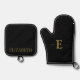 Personalised Black & Gold Oven Mitt and Pot Holder Set