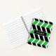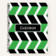 Personalised Black Green Chevron Stripe Notebook original design by Nisha Prabhu. Personalise with your name. Capture your thoughts in style with our Personalised Black Green Chevron Stripe Notebook! This beautifully designed notebook features a bold chevron pattern in eye-catching black and vibrant green, making it a perfect blend of functionality and flair. Ideal for students, professionals, or anyone who loves to jot down ideas, this customisable notebook is a must-have for your stationery collection. The striking chevron design adds a modern touch, making your notebook stand out whether you’re at school, work, or in a meeting.