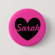 Personalised black heart on fuchsia pink 6 cm round badge