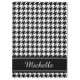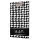 Personalised name black and white houndstooth pattern clipboard design. Elegant typography with girly print. Cute trendy gift idea for school or office supplies.