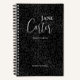 Elegant black leopard checklist notebook with customisable typography in trendy script font and personalised with your name and contact information. Ideal everyday companion to keep your notes and ideas documented and organised.