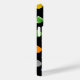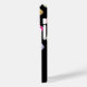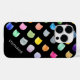 This modern iPhone case is decorated with a colourful abstract pattern on a black background.