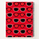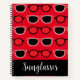 Personalised Black Red Sunglasses Pattern Notebook designed by Nisha Prabhu. Fully Customisable. Personalise with your name. Black red sunglasses on red background. Perfect Eyewear Themed Gifts for Sunglass Lovers, Eyewear Lovers, Fashion and Beauty Lovers.