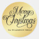 Personalised Black Script on Gold Merry Christmas Classic Round Sticker