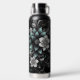 Personalised Black & Teal Glittery Floral Water Bottle
