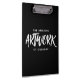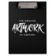 A cool black and white personalised clipboard. Perfect for clipping white paper to for sketching and drawing. The clipboard has the words, "the amazing artwork of" in an artsy brush style font personalised with your name below. Customise the binder with the name of your choice to make someone feel extra special. Makes a fun gift for birthdays or for Christmas. Comes in a variety of colours. Designed for you by Blackberry Boulevard.