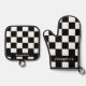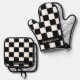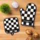 Personalised Black & White Chequerboard Pattern Oven Mitt & Pot Holder Set