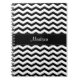 Modern and trendy personalised chevron stripes spiral notebook features black and white chevron stripes and a black accent horizontal ribbon stitch frame for your name, initials or other text. Show your personality with this fun and trendy chevron stripe spiral notebook. Perfect for a journal, taking notes, work, school and home. Makes a great gift for all occasions. Click the "Customise it!" button to change the text size, text colour, font style and more! Please note: the black accent horizontal ribbon stitch frame border is solid black with a ribbon stitch appearance.