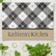 Black White and Gold Buffalo Plaid Kitchen Towel. Personalise with your name or text.