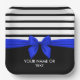 Personalised Black white Stripe Christmas Blue Bow Paper Plate