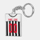 Personalised Black & White Stripes Soccer Jersey Key Ring