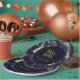 The marbled agate is in a rich dark blue with gold and grey lines.