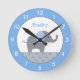 Personalised Blue and Grey Elephant Nursery Round Clock