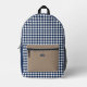 Personalised with Name Blue and White Gingham Tablecloth Printed Backpack.