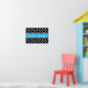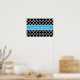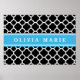A cute, girly, modern black and white Moroccan quatrefoil pattern background with a bright blue customisable name template. Chic, trendy, mod trellis lattice background.