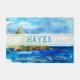 Blue Beach Coastal Ocean and rock Doormat with a beautiful beach background and the family name. Great for a beach front home or as a gift for friends and family living ocean front.
