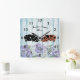 Personalised Blue Floral KuneKune Pig Farm Square Wall Clock