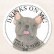 Personalised Blue Frenchie French Bulldog Wedding Round Paper Coaster