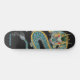 Personalised bold Asian art dragon skateboard with your name in a red sans serif type. Bold blue gold and black.