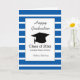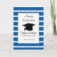 This is a striped blue graduation card for him or her, which can be personalised on the front with the graduating year, school name and graduate's name. It features a grad cap and a stripe design in the background. The inside of this graduation card reads a heartfelt congratulations, which you can easily personalise if you wanted. The back features the striped design with a place for you to personalise with the graduating year. This would make a great graduate keepsake.