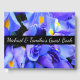 Pretty blue irises look stunning against a black background, creating a stunning wedding guestbook.