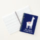 Custom Blue Llama Teacher Planning Notebook - This design has a whimsical white llama on the front with space for your name and the notebook title in white font. To the left side is a pattern seam of cactus and flowers which wraps around to the back cover. Original Design Clare Swindlehurst (c)