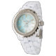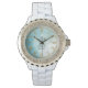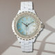 Crafted with a crystal-studded bezel, a white enamel alloy strap, and a luminous blue marble face, this watch reflects sophistication from every angle. The graceful Roman numerals and shimmering accents add a refined touch, making it ideal for brides, bridesmaids, or thoughtful couple’s gifts.