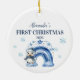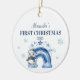 Personalised Blue Penguin Baby First Christmas Ceramic Ornament