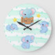 Personalised Blue Pink Baby Elephant Nursery Kids Large Clock